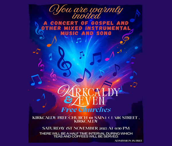 Kirkcaldy and Leven Free Churches present a musical evening of Gospel and other mixed instrumental music and song.